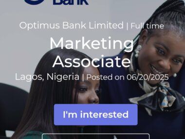 Apply Now! Nigeria Jobs in Lagos Marketing Associate at Optimus Bank: Role Overview, Requirements & How to ApplyByOchazy NG Optimus Bank, a rapidly growing digital-focused financial institution, is inviting applications for the Marketing Associate position based in… Apply Now! 0 0 0